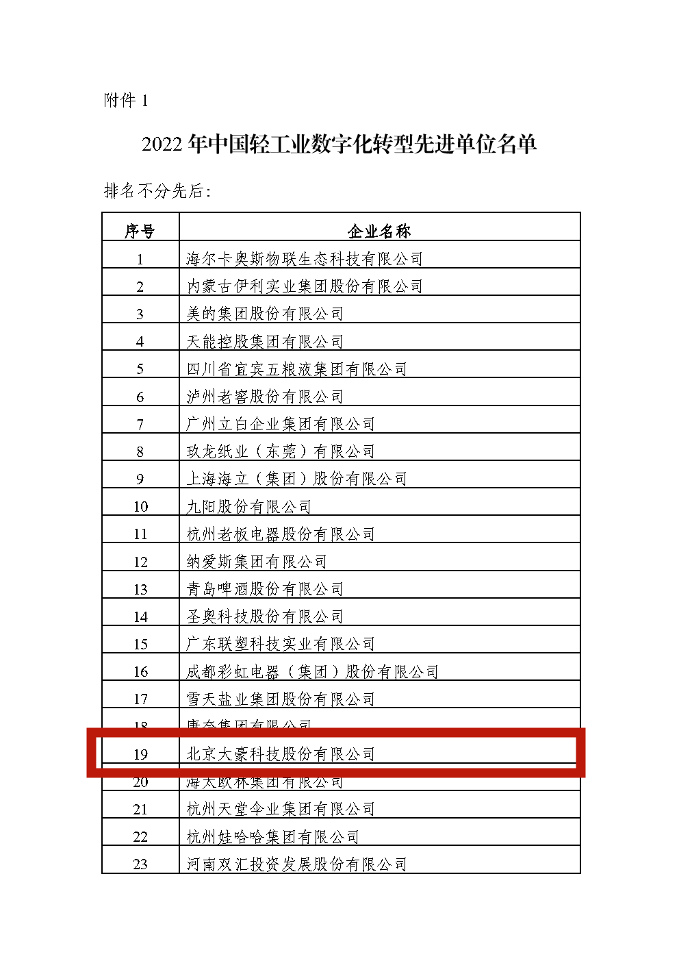 大豪荣获2022年中国轻工业数字化转型先进单位